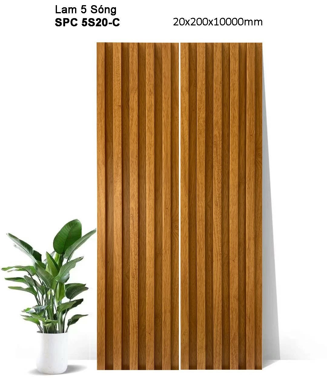 Giá theo Md: 79.000 đ/m Giá theo M2: 395.000 đ/m2 Sản xuất theo kích thước yêu cầu, thời gian từ 5~10 ngày Tồn kho: Thanh 3m – 7m Thương hiệu : iWood Kích thước (W x H x L) : 200 x 20 x 3000mm Màu sắc: 5S20-C Bề mặt : Phủ film vân gỗ Chất liệu: Nhựa SPC siêu cứng Xuất xứ: Việt Nam Ứng dụng: ốp tường, trần, vách trang trí….. Bảo hành: 3 năm