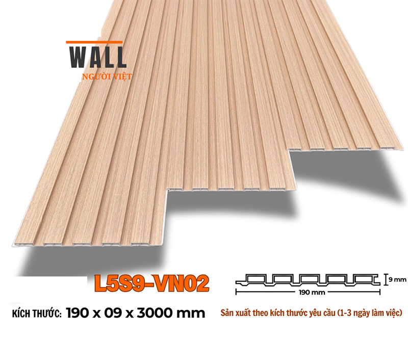 Sản xuất theo kích thước yêu cầu, thời gian từ 2~3 ngày Tồn kho: Thanh 3m Thương hiệu : VNWALL Kích thước (W x H x L) : 190 x 9 x 3000 mm Màu sắc: VN02 Bề mặt : Phủ film vân gỗ Chất liệu: nhựa SPC Xuất xứ: Việt Nam Ứng dụng: ốp tường, trần, vách trang trí….. Bảo hành: 3 năm