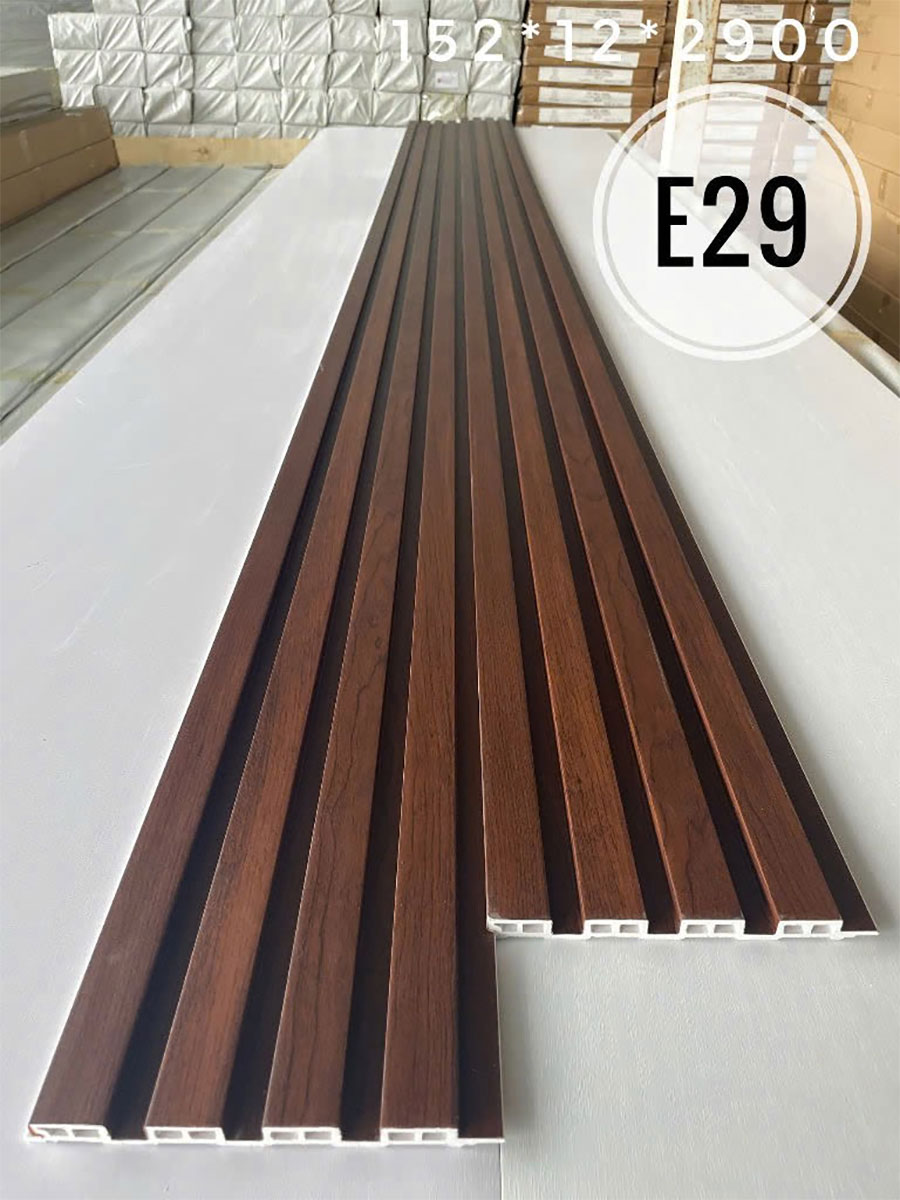 Giá theo m2: 220.000đ/m2 ** Giá trên là giá vật tư thanh lam nhựa, 8% thuế GTGT Chưa bao gồm thi công và phụ kiện. Thương hiệu : HTH Kích thước (W x H x L) : 152x9x2900mm Số tấm/hộp/m2: Màu sắc: E29 Bề mặt : Phủ film vân gỗ Chất liệu: nhựa tổng hợp Xuất xứ: Nhập khẩu Ứng dụng: ốp tường, trần, vách trang trí….. Bảo hành: 5 năm